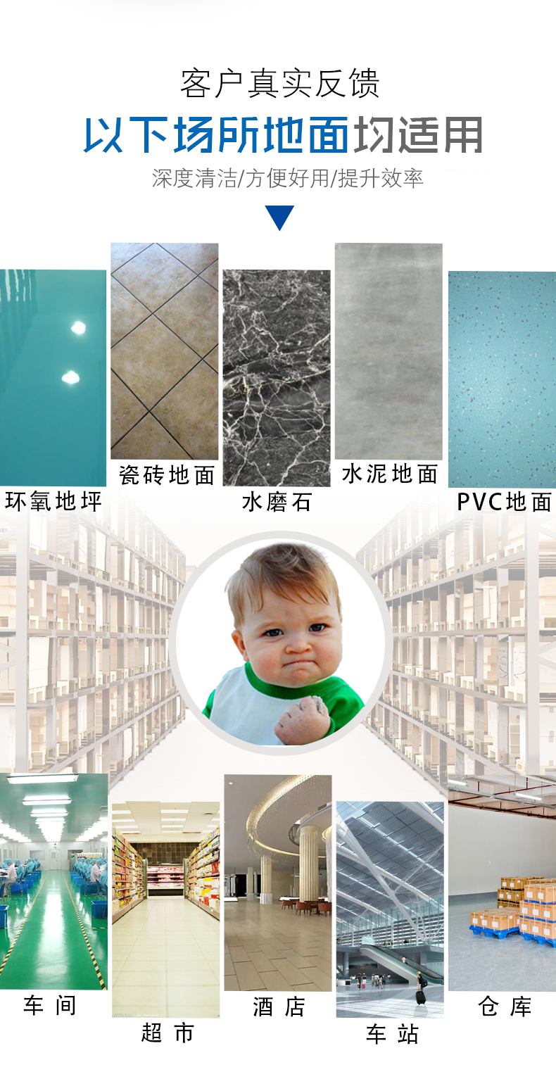 適用場(chǎng)所:商場(chǎng)超市、工廠車(chē)間、學(xué)校醫(yī)院、火車(chē)汽車(chē)站、物業(yè)地下車(chē)庫(kù)等,解決水泥地、瓷磚、環(huán)氧地坪、金剛砂等地面清洗