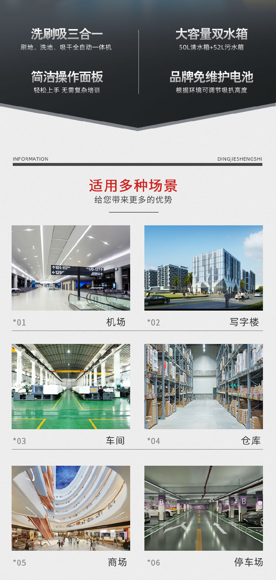 適用場所:商場超市、倉庫車間、學(xué)校醫(yī)院、火車汽車站、物業(yè)地下車庫等,解決水泥地、環(huán)氧地坪、金剛砂等地面清洗。