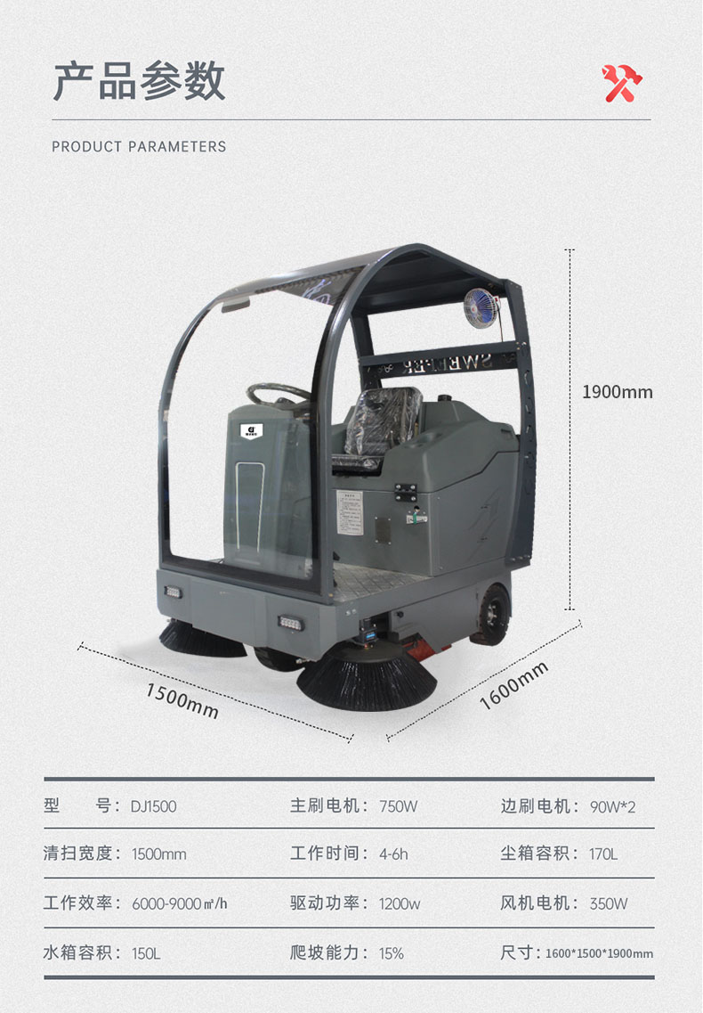 鼎潔盛世商用駕駛式掃地車DJ1500(帶棚)