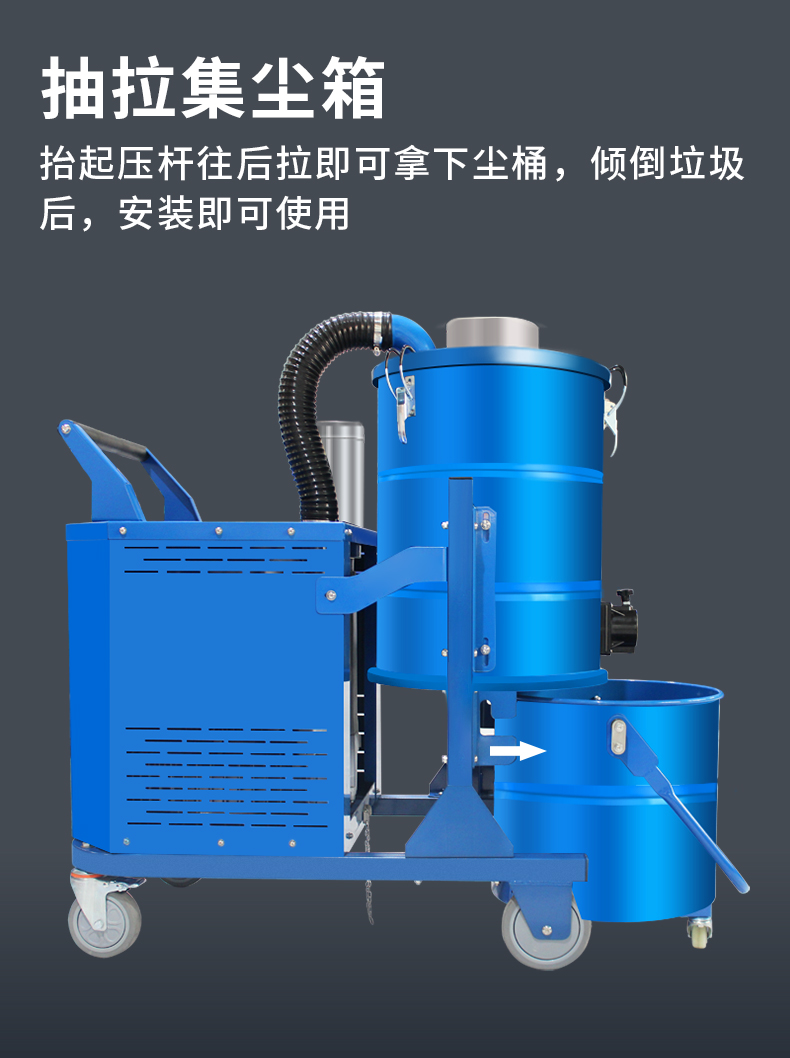 適用場所:DJBM5510工業(yè)吸塵器具結構緊湊、造型美觀、使用安全、經(jīng)濟耐用的特點,物料收集桶和吸塵機可分離,方便集塵桶傾倒及物料回收。