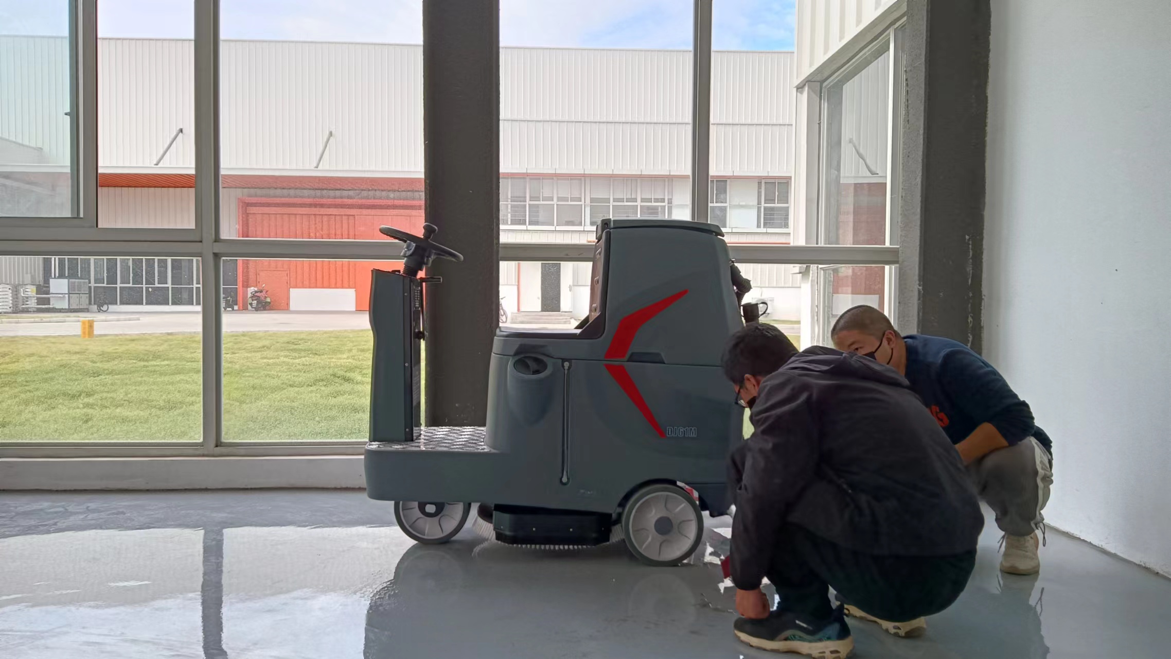 恒鑫物業(yè)人員想選擇電動洗地機來代替人工清洗廠房,采購人員聯系到鼎潔盛世銷售經理,經過銷售經理問完面積及地面情況后,給推薦了兩臺小型駕駛洗地機:DJ61M,此款電動洗地機小巧靈活,操作簡單,清、污水箱分離,吸水膠條可多面使用,有效節(jié)約成本,滿足多種地面環(huán)境洗吸無殘留。