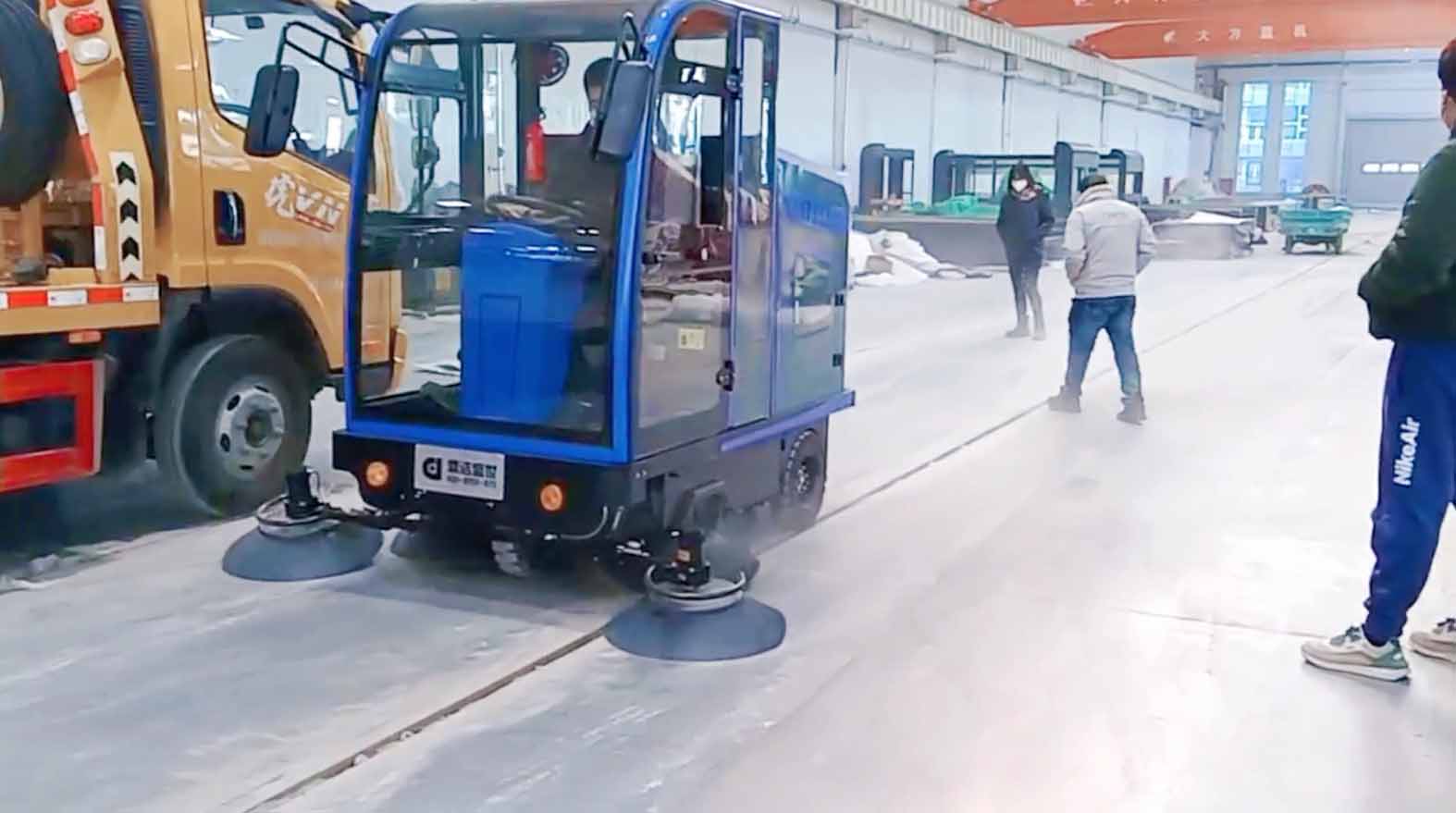 臨工重機(jī)想采購一臺掃地車用于清掃工廠,鼎潔盛世銷售人員問清楚工廠的地面環(huán)境是水泥地面,工廠每天灰塵、垃圾等比較多,鼎潔盛世銷售人員為此推薦了一款駕駛掃地機(jī),雙吸塵風(fēng)機(jī),雙過濾系統(tǒng),超強(qiáng)負(fù)壓吸力大,無揚塵,掃地機(jī)為吸塵、掃地、噴水相結(jié)合自動清潔一體機(jī)。