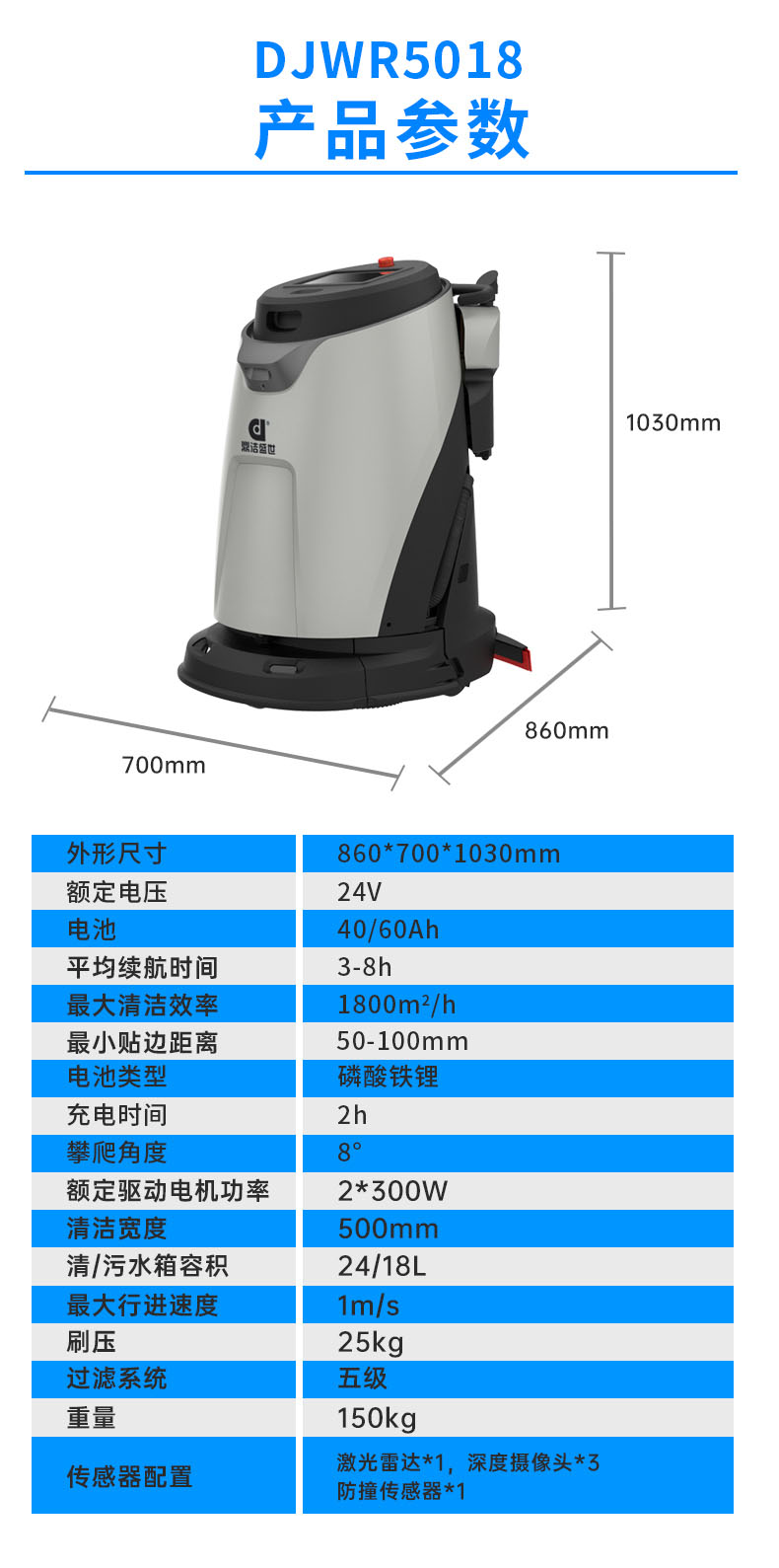 鼎潔盛世無人智能清潔機(jī)器人DJWR5018