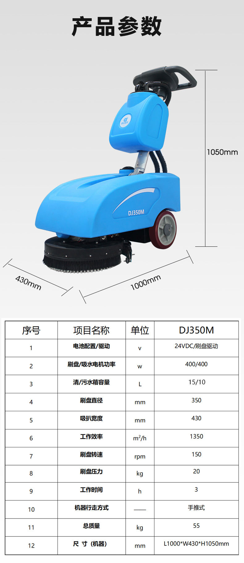 鼎潔盛世商用手推式小型洗地機(jī)DJ350M