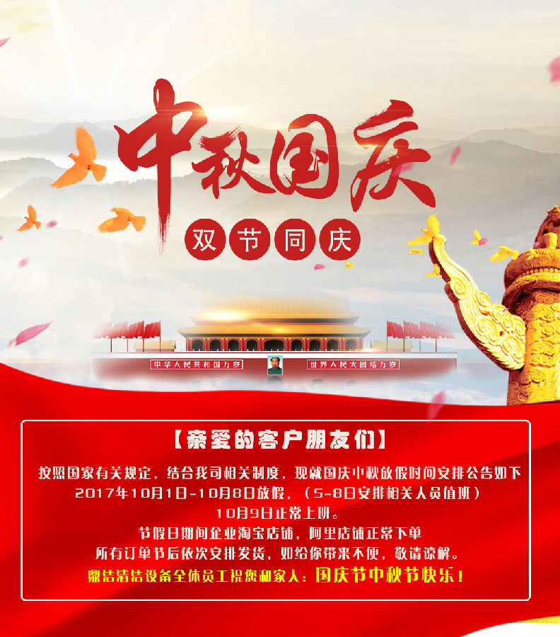 鼎潔清潔設(shè)備國(guó)慶中秋放假公告