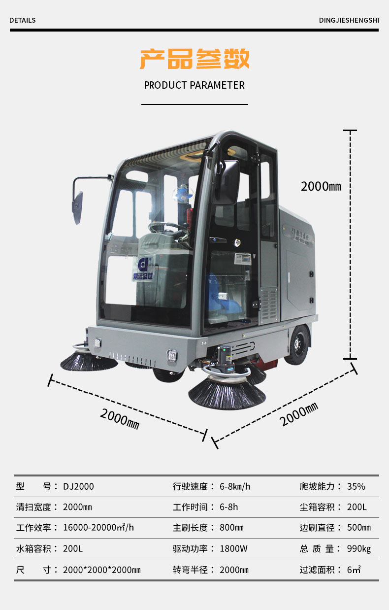 鼎潔盛世商用駕駛式電動掃地機(jī)DJ2000