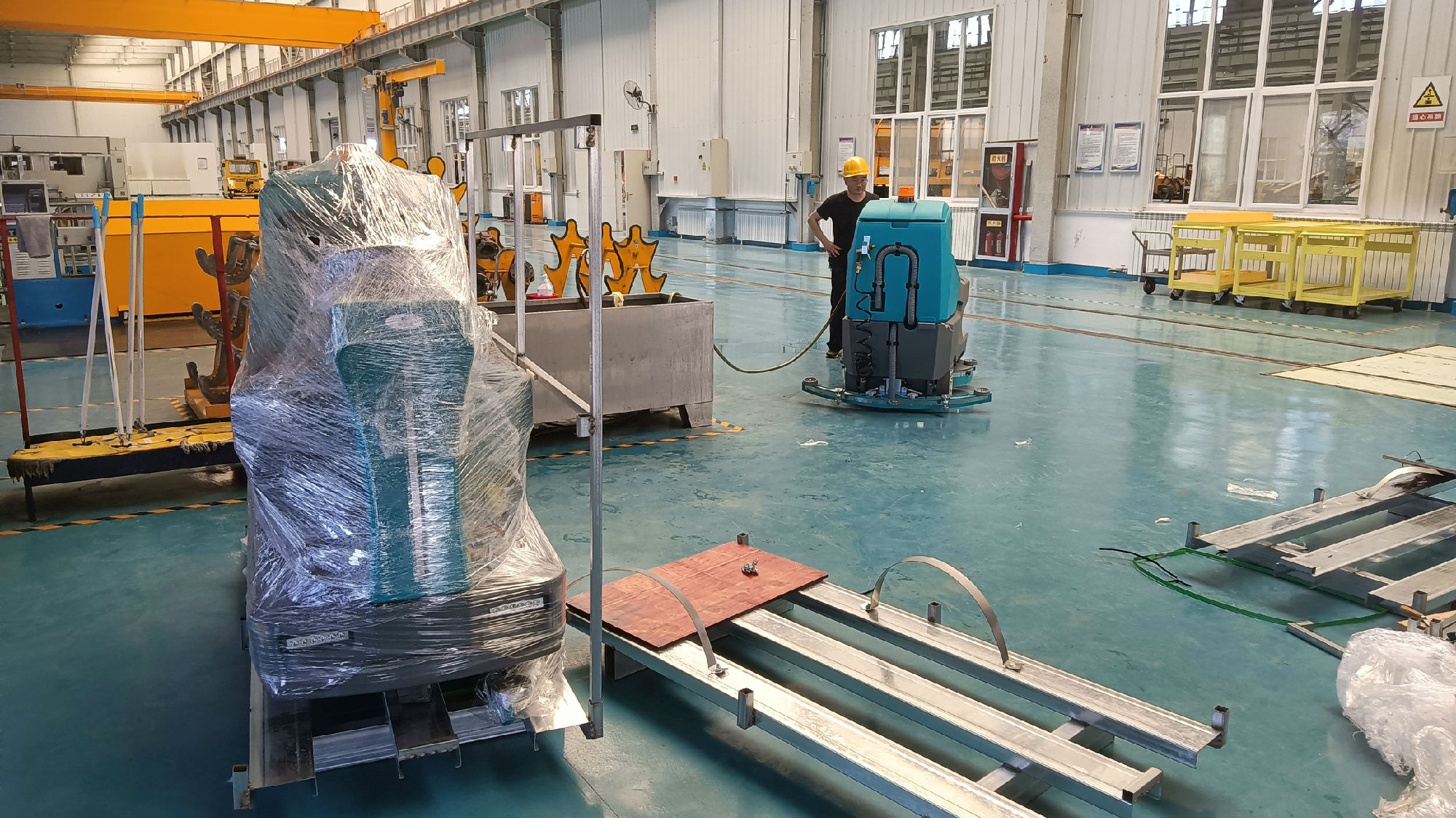 工廠車間一般面積比較大,如果使用人工清潔需要雇傭大量的清潔工人,但是使用駕駛式洗地機進行車間地面清潔就不一樣了,全自動洗地機的清潔效率非常高,只需一人一機就能把車間地面清潔干凈了。