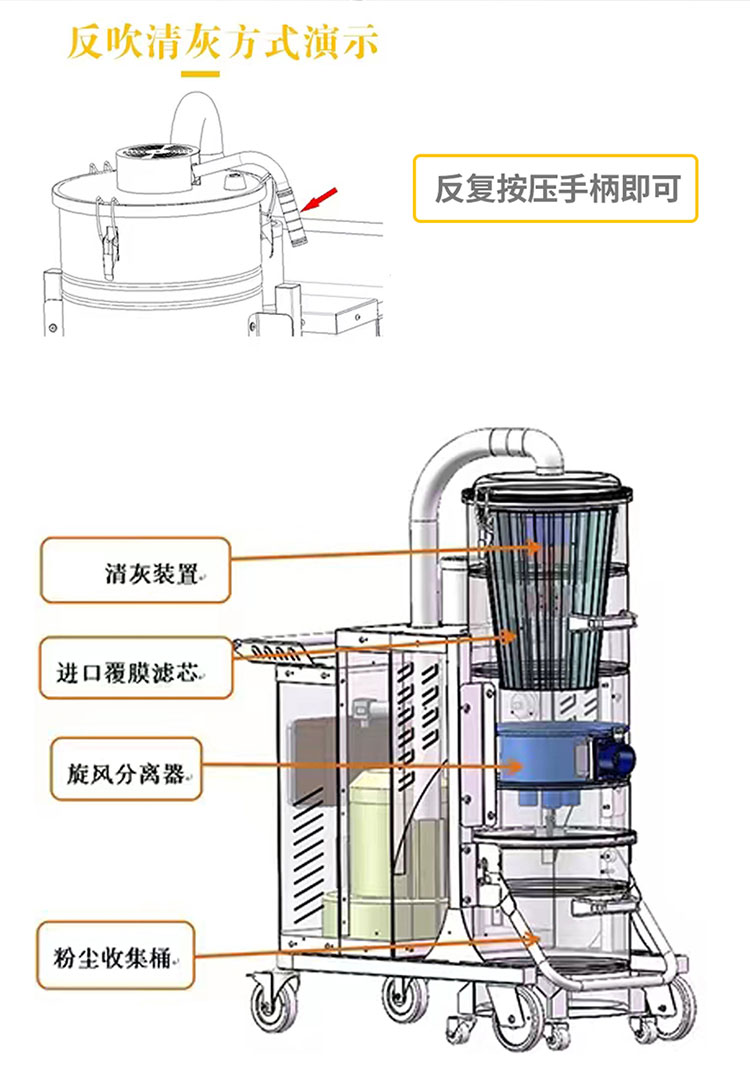 適用場所:DJ5510FB防爆工業(yè)吸塵器大功率防爆吸力強,大容量上下分離快裝桶。