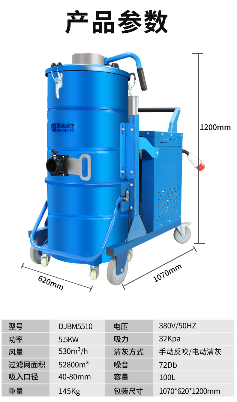 適用場所:DJBM5510工業(yè)吸塵器具結構緊湊、造型美觀、使用安全、經(jīng)濟耐用的特點,物料收集桶和吸塵機可分離,方便集塵桶傾倒及物料回收。
