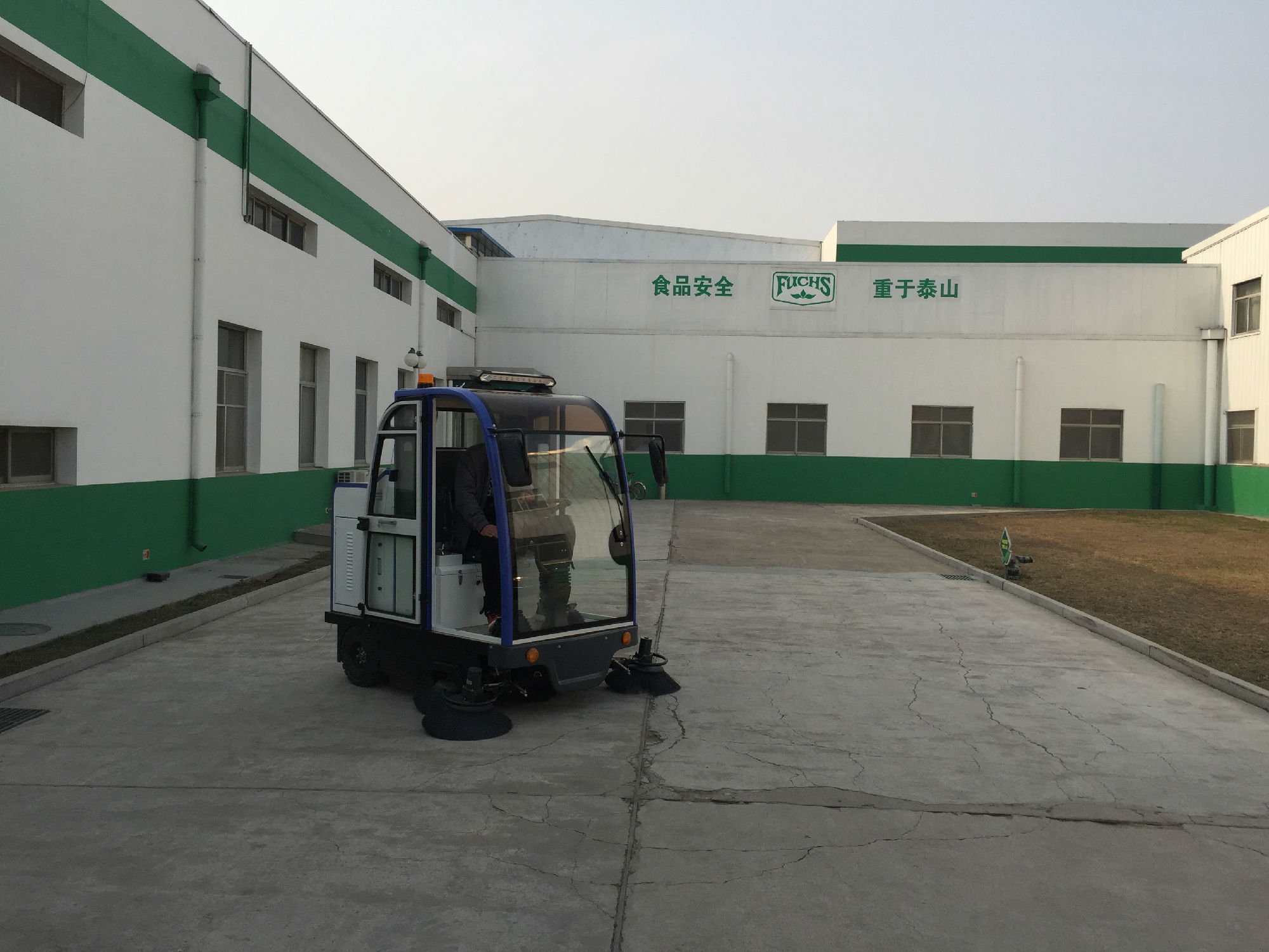 大型廠區(qū)使用鼎潔盛世DJ2210駕駛式掃地車清掃道路